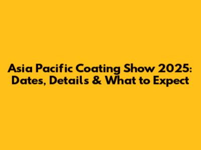 Asia Pacific Coating Show 2025: Dates, Details & What To Expect