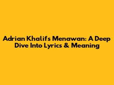 Adrian Khalif's 'Menawan': A Deep Dive Into Lyrics & Meaning