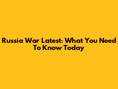 Russia War Latest: What You Need To Know Today