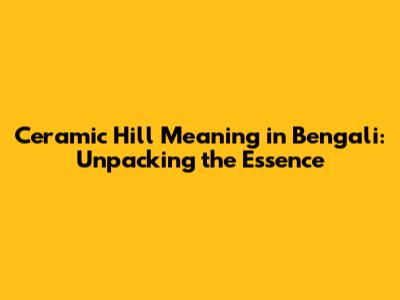 Ceramic Hill: Unveiling Its Bengali Meaning & Significance