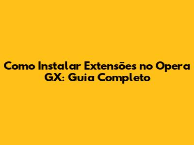 Como Instalar Extensões No Opera GX: Guia Completo