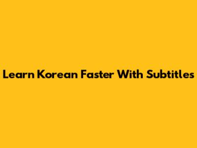 Learn Korean Faster With Subtitles