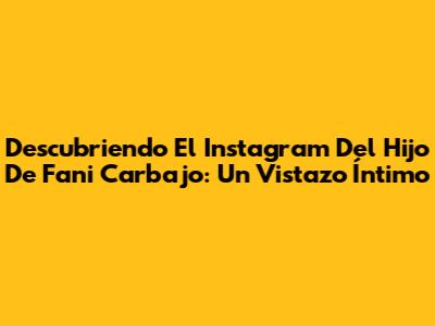 Descubriendo El Instagram Del Hijo De Fani Carbajo: Un Vistazo Íntimo