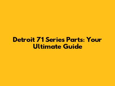 Detroit 71 Series Parts: Your Ultimate Guide