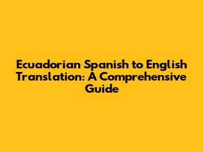 Ecuadorian Spanish To English Translation: A Comprehensive Guide
