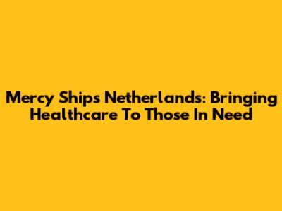 Mercy Ships Netherlands: Bringing Healthcare To Those In Need