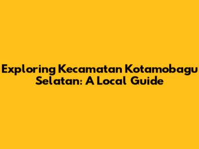 Exploring Kecamatan Kotamobagu Selatan: A Local Guide