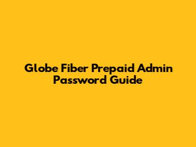 Globe Fiber Prepaid Admin Password Guide
