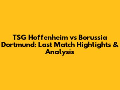 Hey guys! Let's dive into the thrilling world of Bundesliga football and dissect the last match between TSG Hoffenheim and Borussia Dortmund. This clash is always a spectacle, filled with drama, skill, and tactical brilliance. Whether you're a die-hard fan of either team or just a football enthusiast, understanding the nuances of their recent encounter can give you a deeper appreciation for the game. So, grab your favorite snack, settle in, and let's break down what made this match so captivating. We'll explore key moments, player performances, tactical decisions, and the overall impact of the game on both teams' seasons. Get ready for an in-depth analysis that goes beyond the final score! By the end of this read, you'll be equipped with all the insights to discuss this match with your fellow football fanatics.
