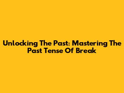 Unlocking The Past: Mastering The Past Tense Of 'Break'