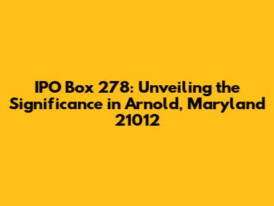 IPO Box 278: Navigating The Arnold, MD 21012 Landscape