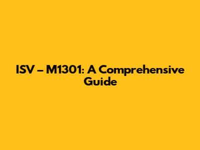 Hey guys, let's dive deep into the ISV – M1301, a topic that might sound a bit technical, but trust me, understanding it can unlock a whole new level of efficiency and insight in your work. Whether you're a seasoned pro or just starting out, this guide is packed with everything you need to know about the ISV – M1301, broken down in a way that's easy to digest. We'll cover what it is, why it's important, and how you can leverage its capabilities to their fullest. So, buckle up, and let's get started on unraveling the mysteries of the ISV – M1301.