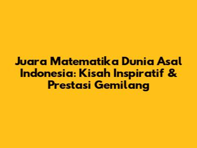 Juara matematika dunia dari Indonesia telah mengukir sejarah gemilang di berbagai ajang bergengsi. Mereka bukan hanya mengharumkan nama bangsa, tapi juga menjadi bukti bahwa anak-anak Indonesia punya potensi luar biasa di bidang matematika. Prestasi mereka ini tentu saja bukan datang begitu saja. Butuh kerja keras, ketekunan, dan dukungan dari berbagai pihak. Mereka telah membuktikan bahwa dengan semangat juang yang tinggi, semua mimpi bisa diraih. Mereka adalah generasi emas matematika yang menjadi inspirasi bagi generasi muda Indonesia.