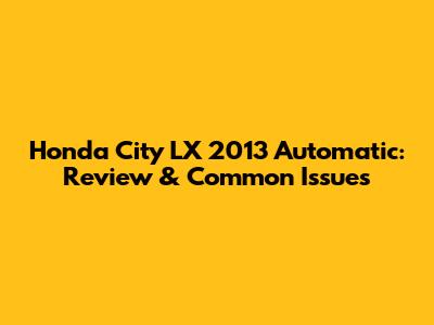 Honda City LX 2013 Automatic: Review & Common Issues