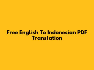 Free English To Indonesian PDF Translation