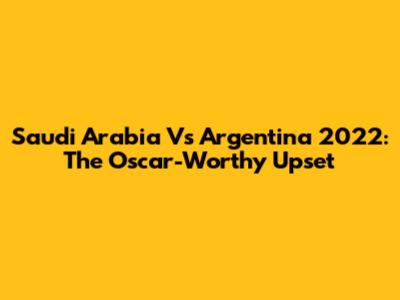 Saudi Arabia Vs Argentina 2022: The Oscar-Worthy Upset