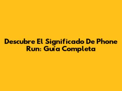 Descubre El Significado De Phone Run: Guía Completa