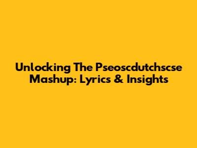 Unlocking The Pseoscdutchscse Mashup: Lyrics & Insights