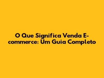 O Que Significa Venda E-commerce: Um Guia Completo