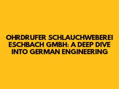 Hey everyone! Today, we're going to take a super interesting trip into the world of German manufacturing, specifically focusing on a company that's been around for a good while and has a solid reputation: Ohrdrufer Schlauchweberei Eschbach GmbH. You might not have heard of them before, but trust me, guys, their story and their products are pretty darn cool, especially if you're into industrial hoses and high-quality textiles. We're going to unpack what makes this company tick, from its historical roots to its modern-day innovations. Get ready for a deep dive into some serious engineering prowess!