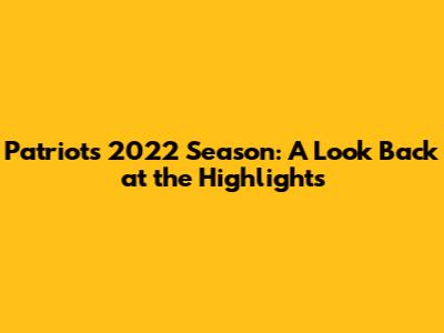 Patriots 2022 Season: A Look Back At The Highlights