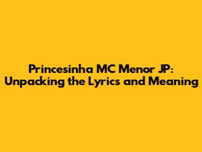 Hey guys! Let's dive into the world of "Princesinha" by MC Menor JP. This track has been making waves, and for good reason. It's got that infectious beat that gets you moving, but what's really captivating is the story MC Menor JP weaves through his lyrics. Today, we're going to break down what "Princesinha" is all about, exploring the themes, the slang, and why this song has resonated with so many people. It’s more than just a catchy tune; it’s a snapshot of a certain vibe and a way of life that MC Menor JP is known for. So, grab your headphones, turn up the volume, and let's get into it!