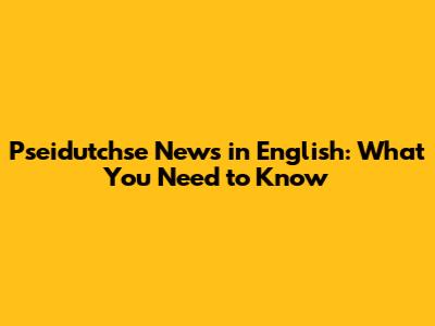 Pseidutchse News In English: What You Need To Know