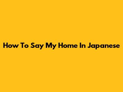 How To Say "My Home" In Japanese