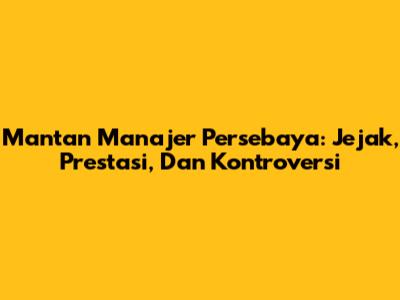 Mantan Manajer Persebaya: Jejak, Prestasi, Dan Kontroversi