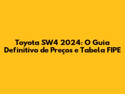 E aí, galera! Se você tá de olho no Toyota SW4 2024 e quer saber tudo sobre o preço e a Tabela FIPE, chegou no lugar certo! Vamos desmistificar esse SUV robusto e te dar todas as informações que você precisa pra fazer um ótimo negócio. O SW4 é conhecido pela sua força, conforto e capacidade off-road, e entender o valor de mercado é crucial, né? Então, se prepara pra mergulhar nesse universo de preços e descobrir se esse carrão cabe no seu bolso e nas suas aventuras!