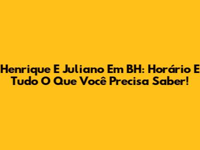Henrique E Juliano Em BH: Horário E Tudo O Que Você Precisa Saber!