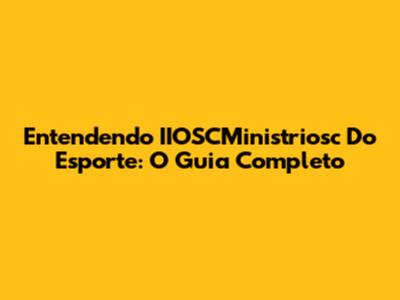 Entendendo IIOSCMinistriosc Do Esporte: O Guia Completo